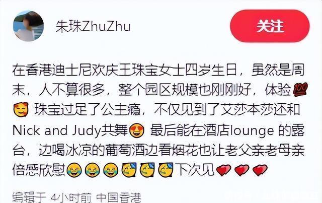 阅读此文之前,麻烦您点击一下“关注”,既方便您进行讨论和分享,又能给您带来不一样的参与感,创作不易,感谢您的支持。 近日,演员朱珠更新动态,称一家人带着女儿到迪士尼庆生,体验感特别好。 据悉,朱珠家住在北京,要去迪士尼的话上海是最近的,可她却选择了香港,原因就是那里人少,女儿能尽量不被打扰。