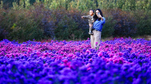 吐鲁番市融媒体中心讯(文/图 通讯员 李靖海 王露 胡国凯)10月12日,托克逊县郭勒布依乡硝尔村的林海园林苗圃基地迎来盛花期,吸引众多周边游客前来赏花打卡。